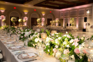 Ceiling height matters too. Low ceilings can make tall arrangements feel overwhelming, while soaring ceilings swallow up modest centerpieces. We consider the architecture of your venue when planning proportions.